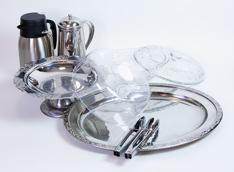 パーティや宴会に必要な食器、フォーク、ナイフ類と様々なカクテルやワイン、シャンパーンに必要なグラスを完備しています。