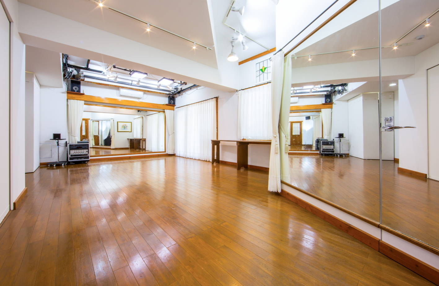 ○更衣室2室 ○壁面鏡 ○ 給湯室 ○トイレ ○Bスタジオ常備音響機材(ミキサー・アンプ・CD/MDプレイヤー ○モニター設備 ○PC ..........標準設備 ○スクリーン ○ホワイトボード ○丸椅子