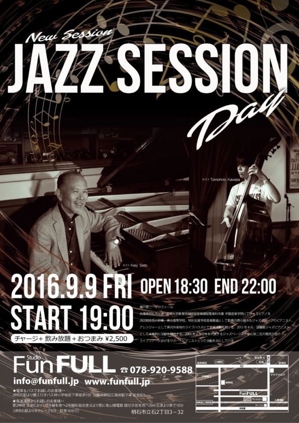 様々なジャズグループのピアニストアレンジャーとして活躍されるピアニスト瀬戸啓二さん。ベースの川田智博さんと一緒にセッションをナビゲートしてくださいます。ぜひ皆さんでJazzSessionをお楽しみ下さい!